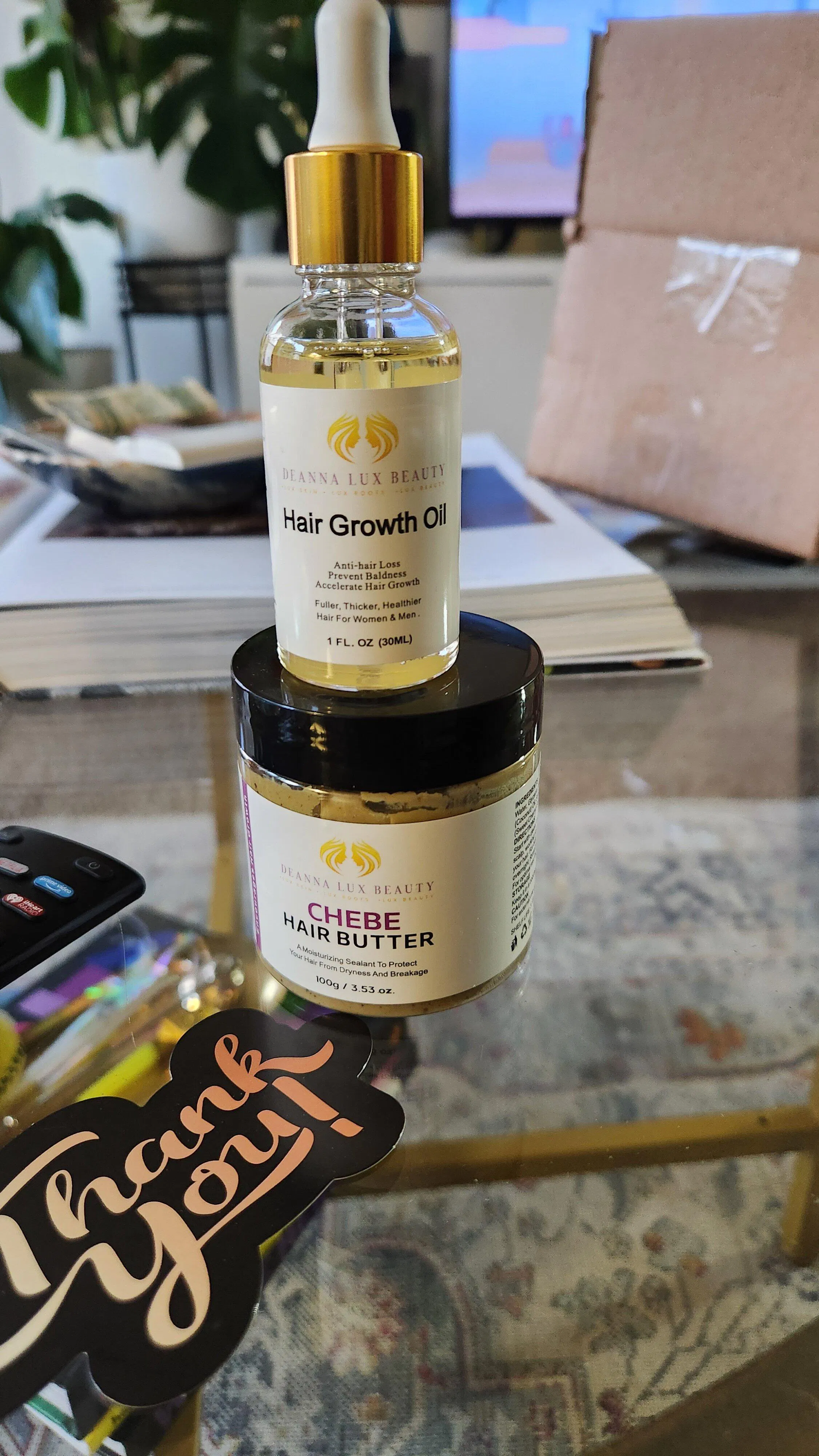 Transform you hair with the power of DeAnna Lux Beauty Hair Growth Oil and Chebe Hair Butter a dynamic duo designed to nourish, strengthens, and accelerate hair growth for fuller healthier locks.